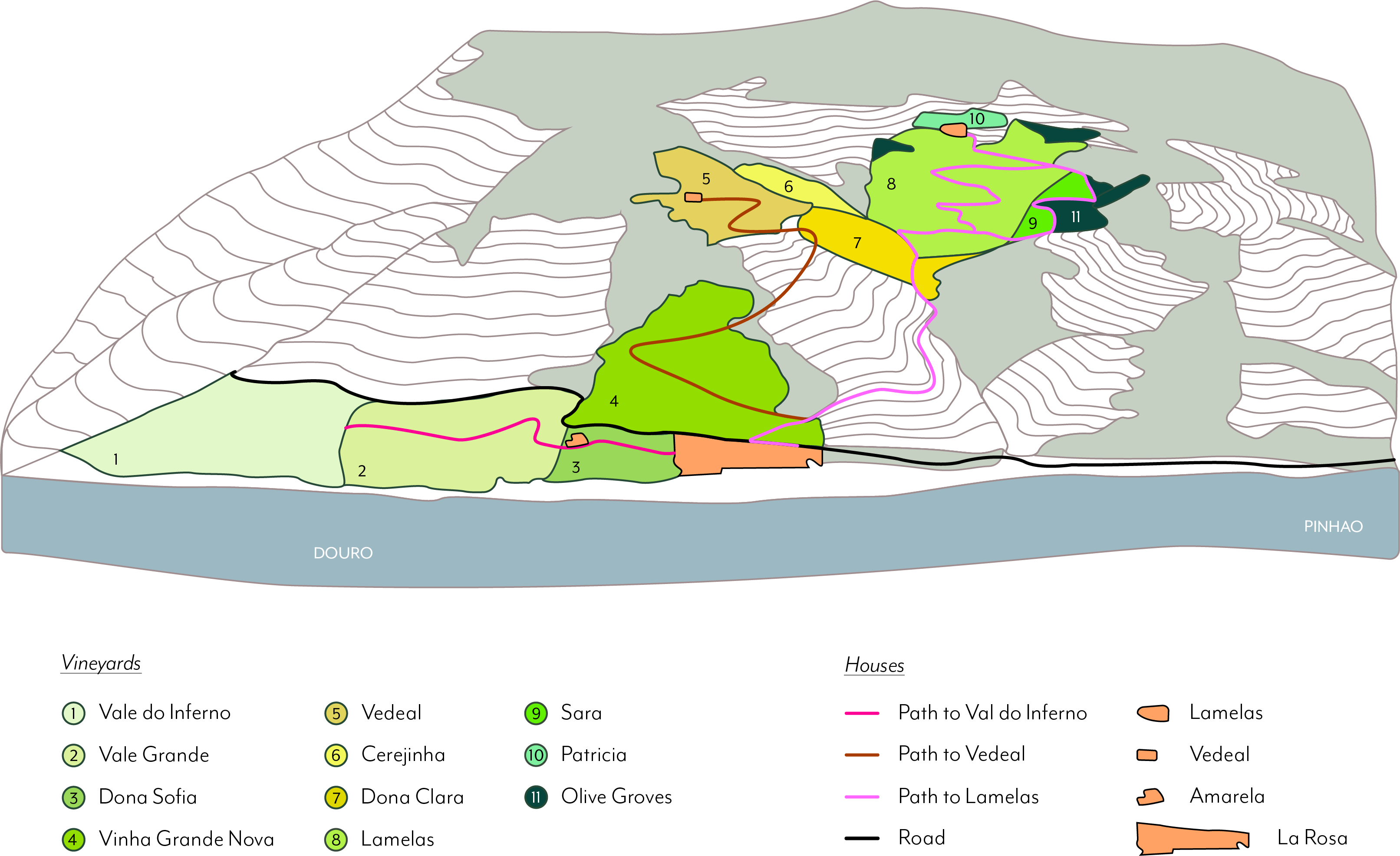 We are located in Northern Portugal in the Cima Corgo sub-region of the Douro Valley, the oldest demarcated wine region in the world. We are easily accessible – just 2km from to the town of Pinhão and a 20-minute drive from Regua. It’s only 1.5hrs drive from Porto airport or 2.5hrs train ride from central Porto to Pinhão.